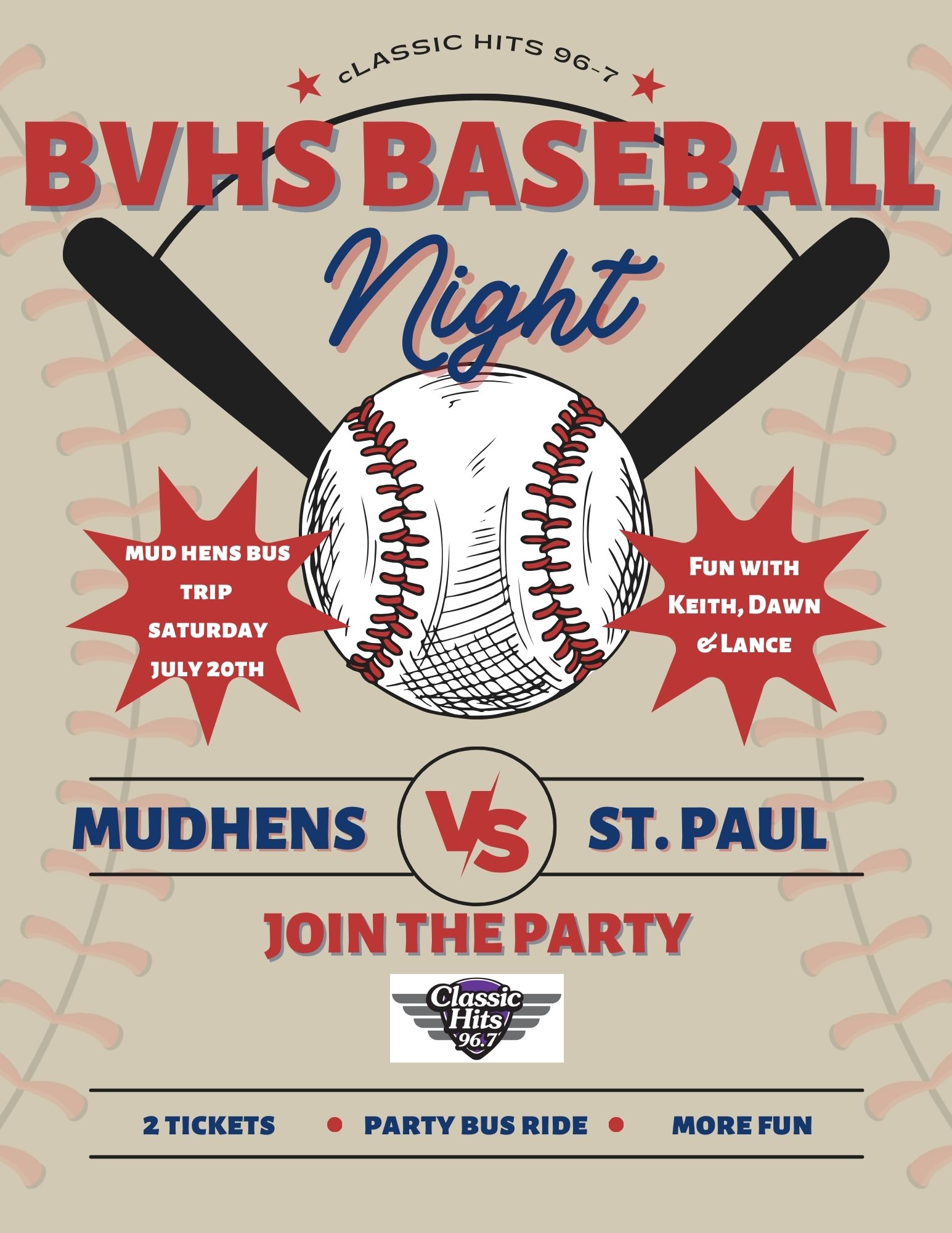Fill out the form below to enter for your chance to join us on our Classic Hits 96-7 WBVI Bus Trip to the Toledo Mud Hens game on 7/20 vs the St. Paul!! (Adult trip 21+)